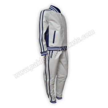 New Arrival Fashion Style Real Leather White Tracksuit Set with Red Side Stripes