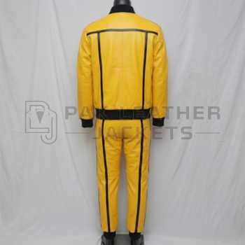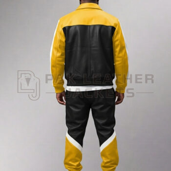 Men’s Real Leather Style fashion Yellow Color Tracksuit Jogging Trousers Sports Hoodie Set With Black Side Stripe