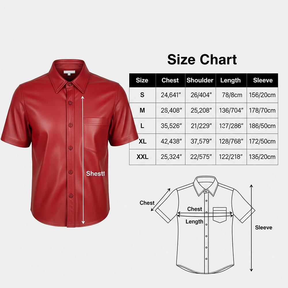 Genuine Leather Short Sleeve Shirt | Men’s Real Leather Button-Up | Bold Retro Rocker Style | Handmade Festival & Clubwear | Choose Your Color