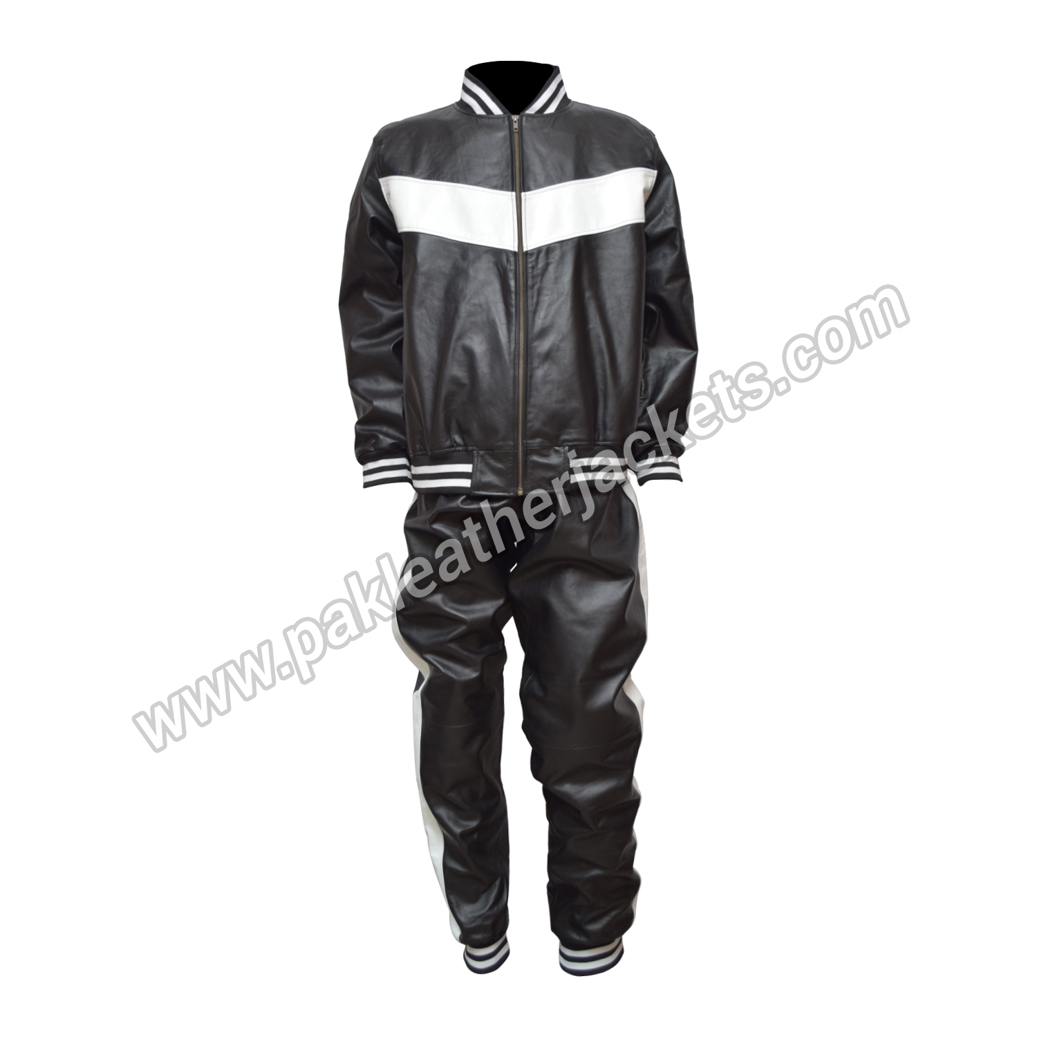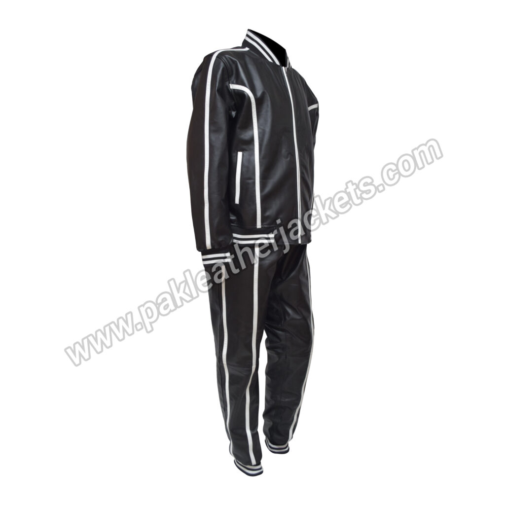This tracksuit is designed with perfection to keep you comfortable. Made with plain soft Leather to give you a perfect fit. The tracksuit features a zipped-styled Jacket come with matching stripe on the Chest