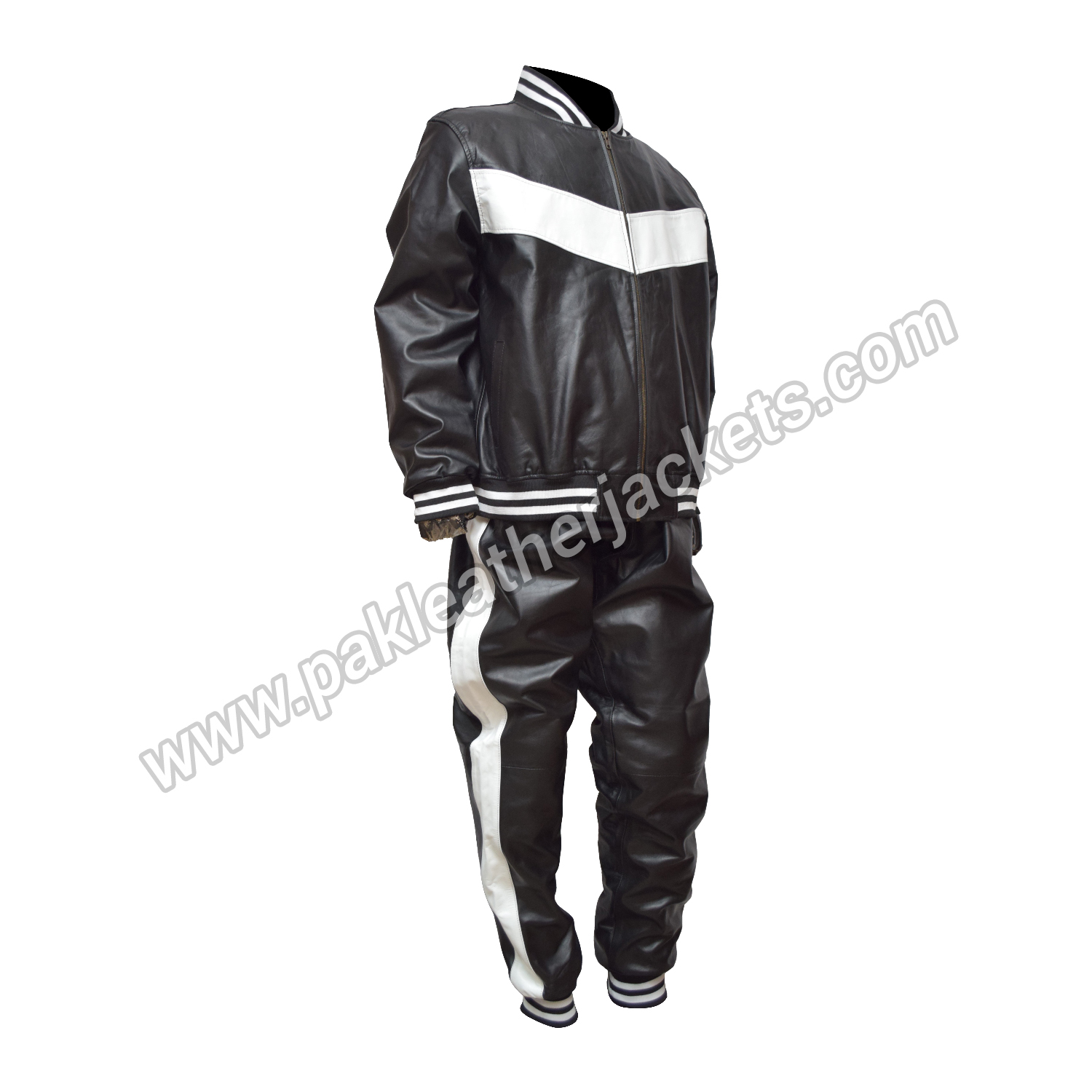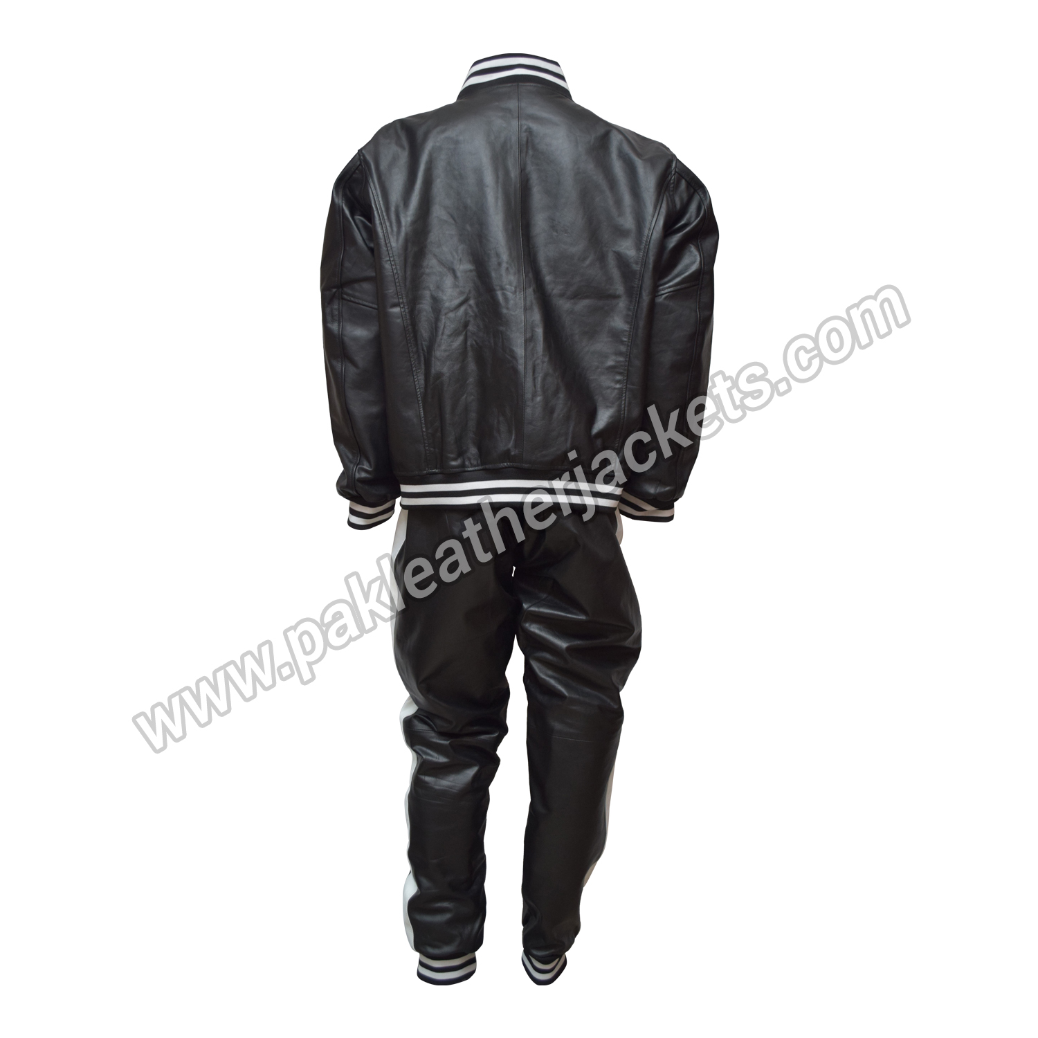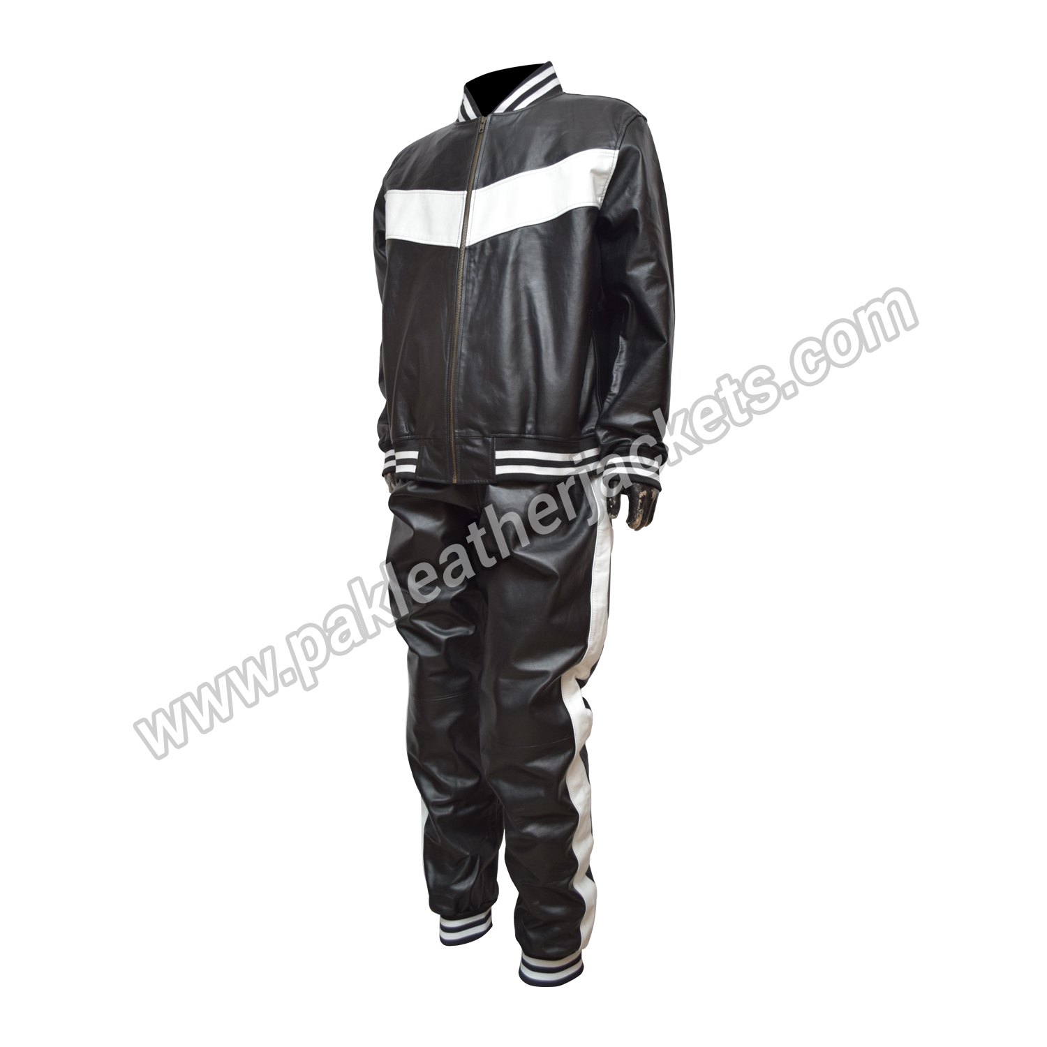 New Arrival Handmade Fashion Style Real Leather Black Tracksuit