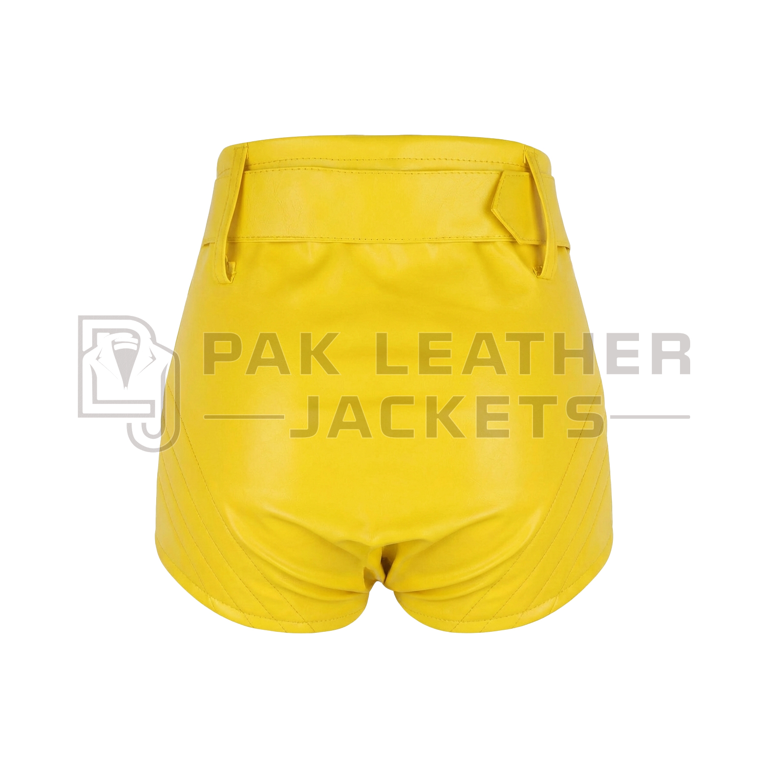 Upgrade your wardrobe with these stylish and edgy Women’s Yellow Leather Shorts, designed to deliver a bold and confident look. Made from premium-quality faux leather, these shorts offer a sleek finish with a soft inner feel, ensuring both comfort and durability for all-day wear.